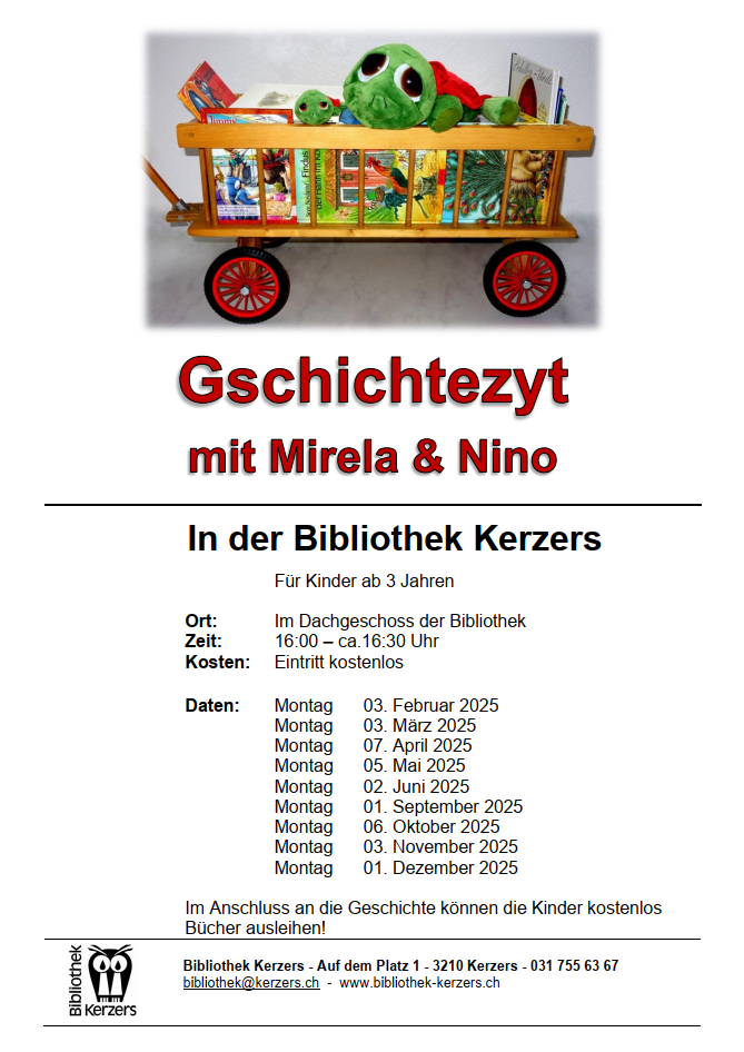 Bibliothek Kerzers: Gschichtezyt mit Mirela und Nino